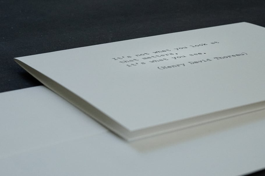 Every card is a unique original, typed by hand.